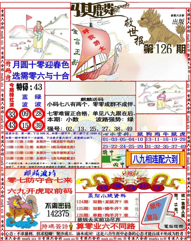 麒麟救世报/大刀皇/广州传真中特诗/广州传真猜特诗